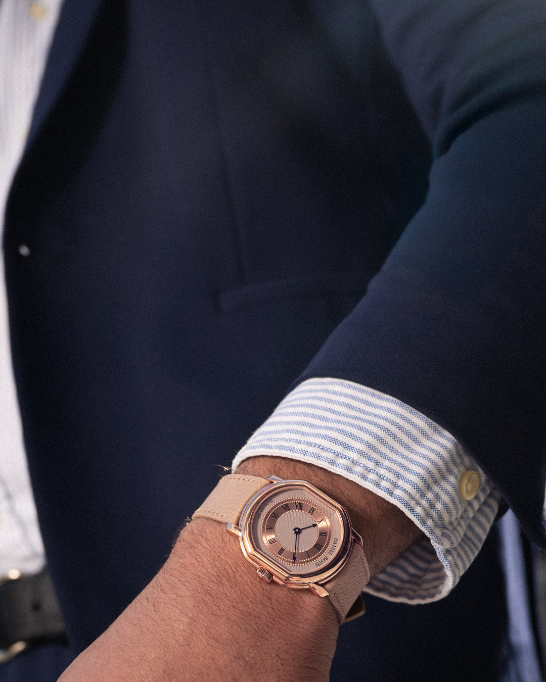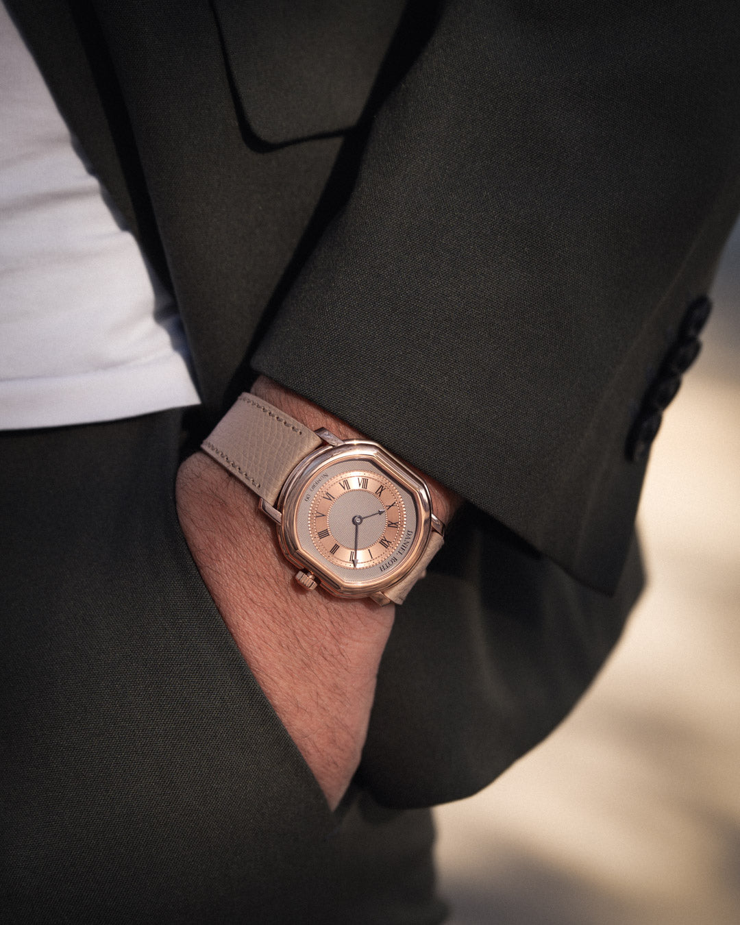 The rebirth of Daniel Roth continues with the Extra Plat Rose Gold, an evolution of the brand’s understated design language and mechanical artistry. Powered by the calibre DR002, developed and assembled by La Fabrique du Temps Louis Vuitton under the guidance of Michel Navas and Enrico Barbasini, it upholds the same ethos of purity and precision that defined Mr. Roth’s earliest creations.