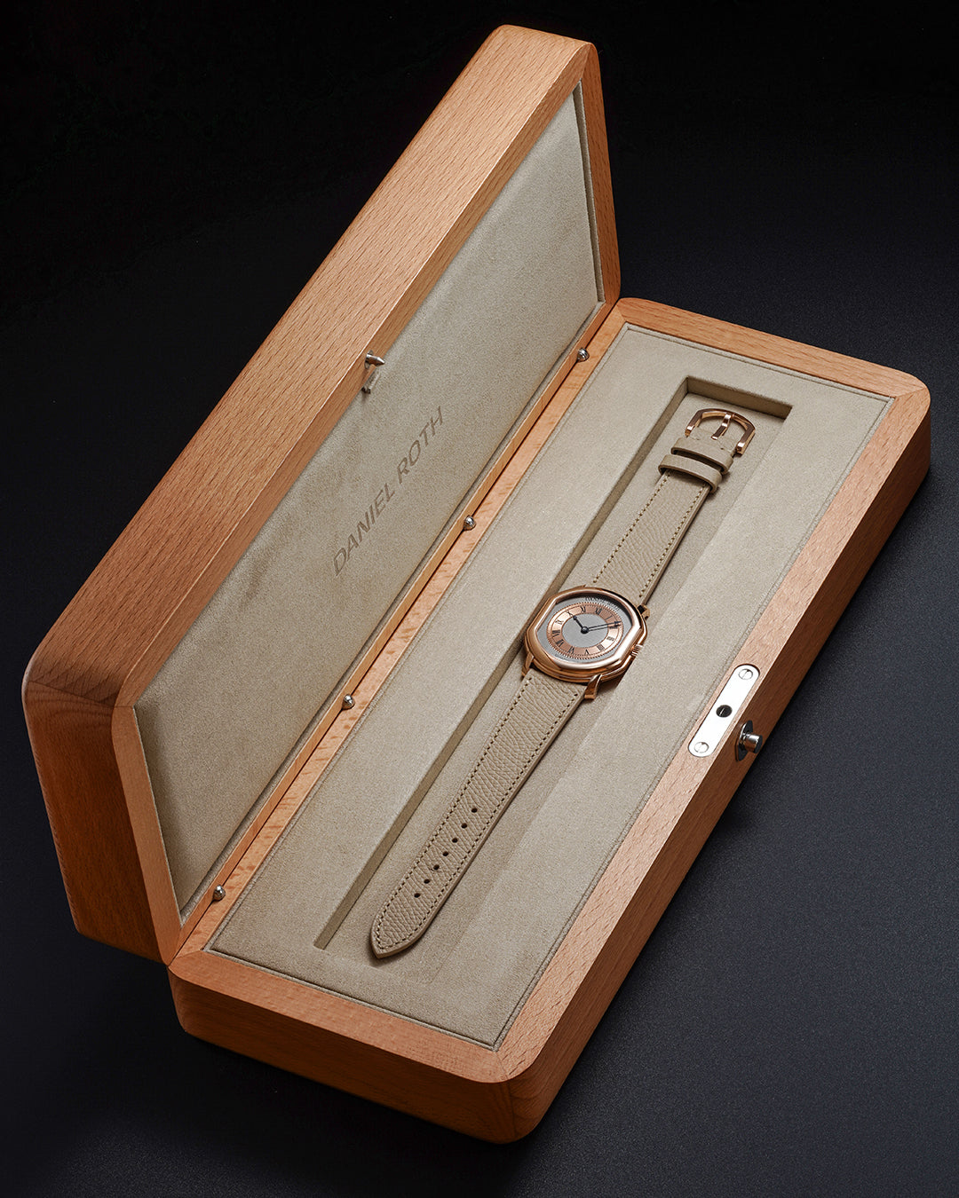 The idea of an ultra-thin dress watch was one of Roth’s long-held obsessions. First imagined in the 1980s and realized in 1990, it captured the essence of refinement through minimalism — an idea now reinterpreted in 5N rose gold.