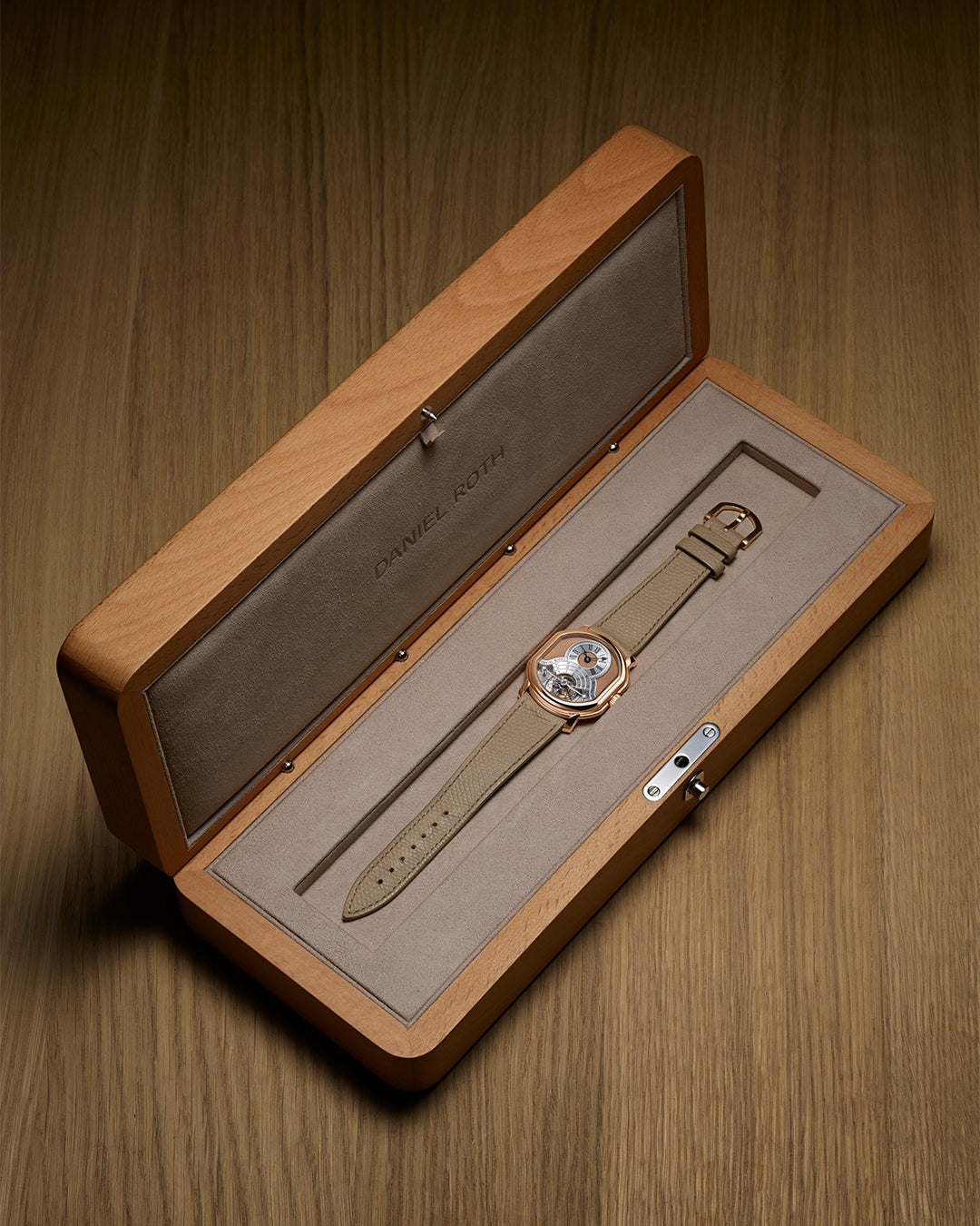 Developed and assembled at La Fabrique du Temps Louis Vuitton under the guidance of Michel Navas and Enrico Barbasini, the in-house Calibre DR001 embodies Mr. Roth’s devotion to traditional haute horlogerie: understated on the surface, meticulous underneath.