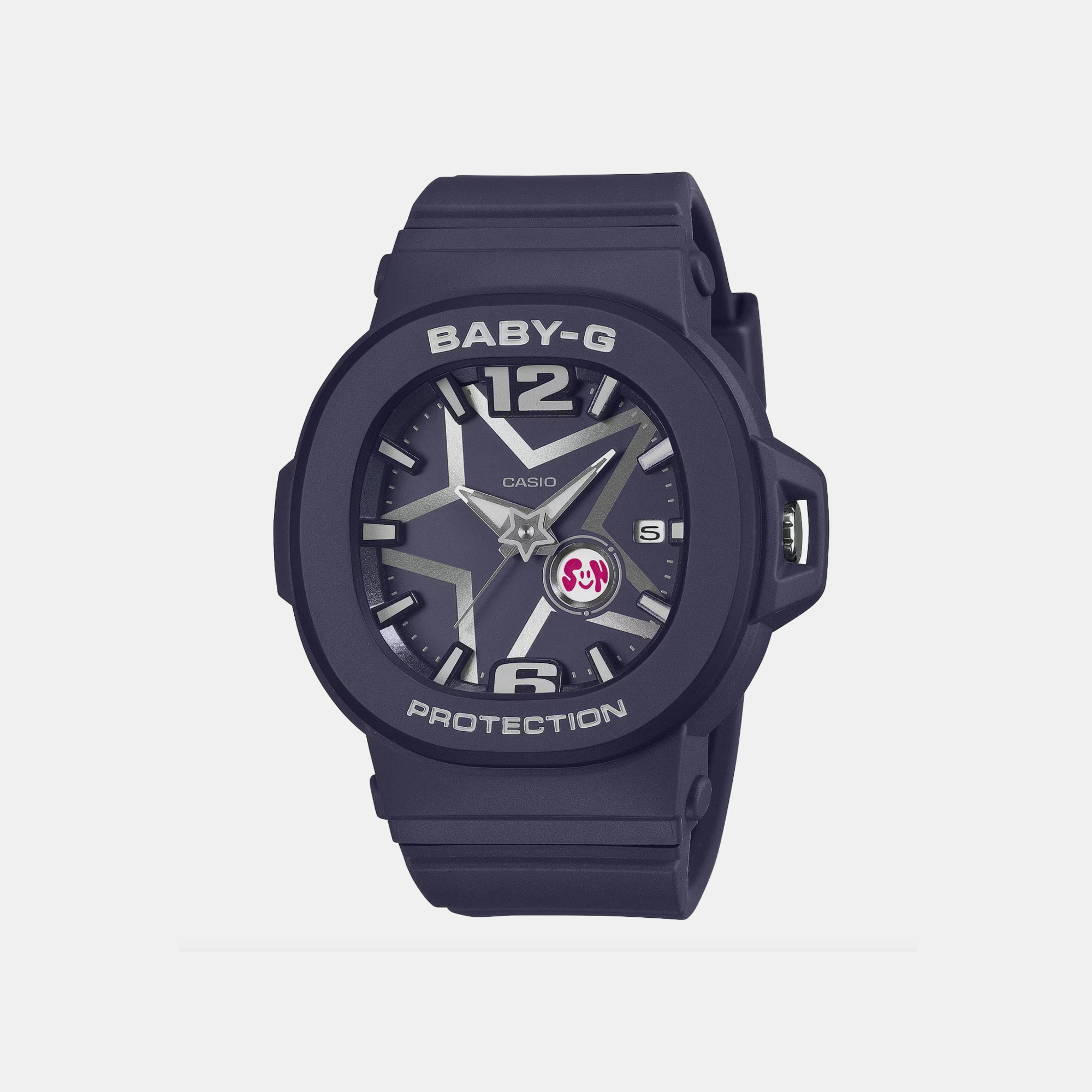The BGA-10D-2A1DR combines a sleek blue dial with a stainless steel bracelet for a stylish yet tough look. Designed for women who want a balance of elegance and durability, this BABY-G watch is ideal for both casual and everyday wear.