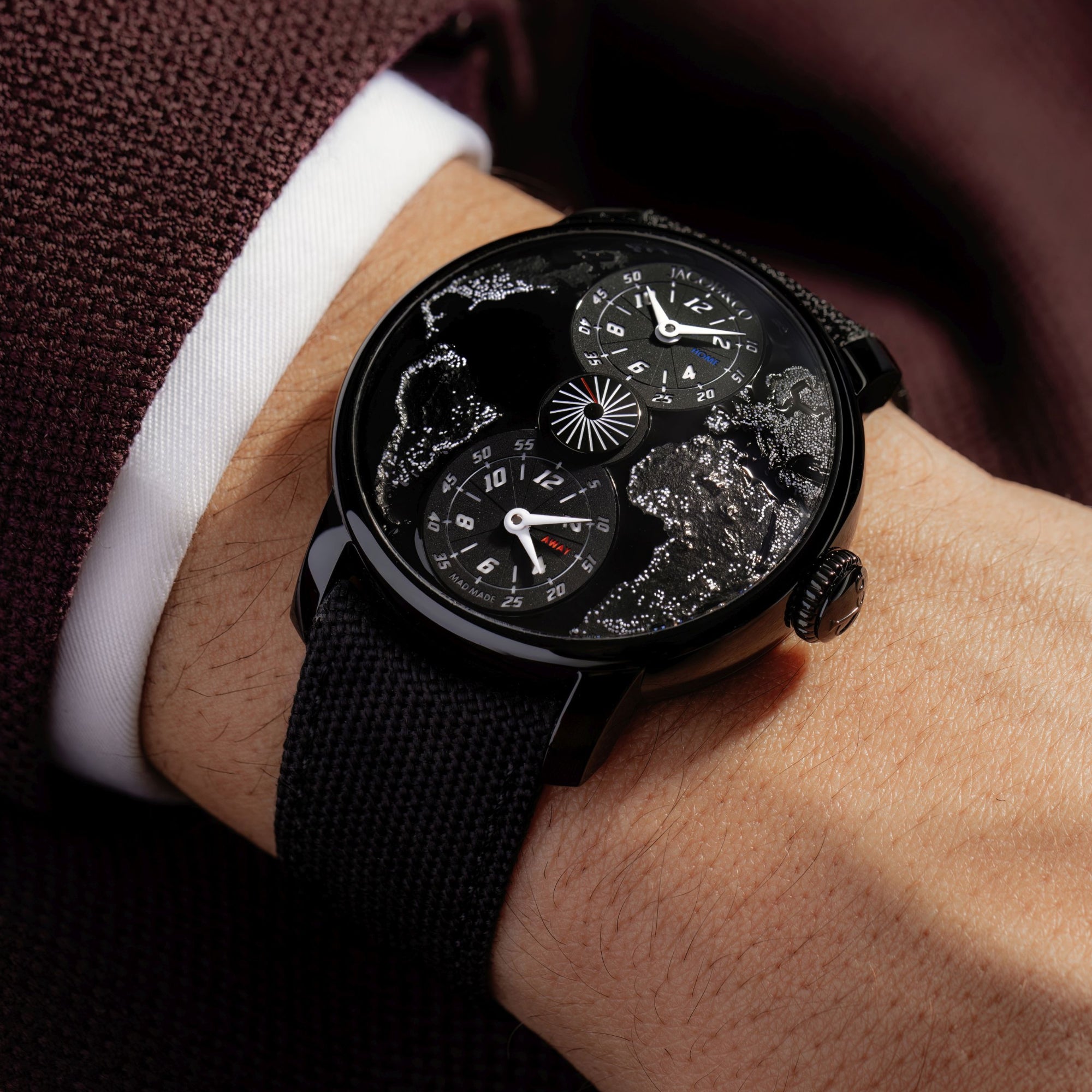 The World Is Yours Dual Time Zone MAD Paris is a tribute to the watch that started it all. The watch that opened the world of watchmaking to Jacob Arabo. It's inspired by a vintage timepiece that's an Arabov family heirloom : a double time zone watch that Jacob Arabo received at the age of 13, from the hands of his father, Nison Arabov.