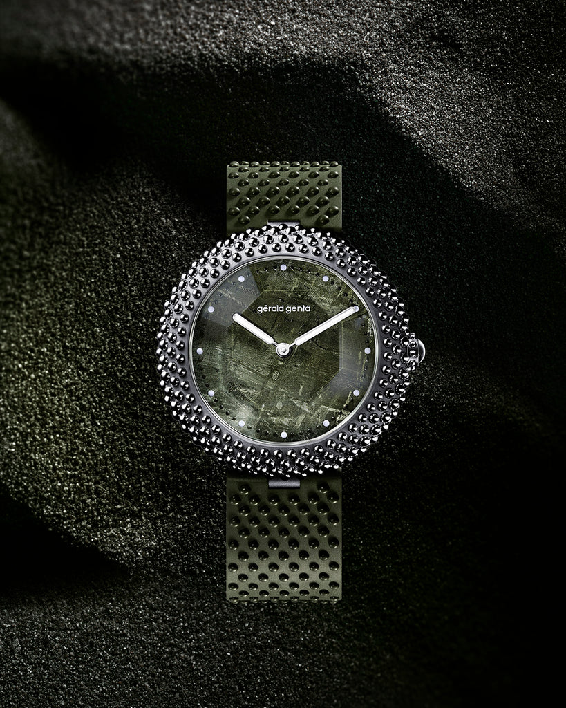 The Gentissima Oursin 41 in Green Meteorite pushes Gérald Genta’s creative philosophy into deeper, moodier territory — where colour, texture, and geometry collide.