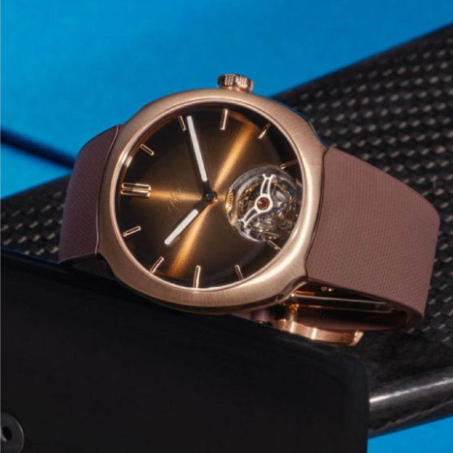 The Streamliner Tourbillon Pierre Gasly Edition is a creation born from close collaboration between H. Moser & Cie. and Formula 1 driver Pierre Gasly. Every detail reflects Gasly’s personal vision — from the deep Chocolate fumé dial, to the red gold case, to the choice of a flying tourbillon as the beating heart of the watch.
