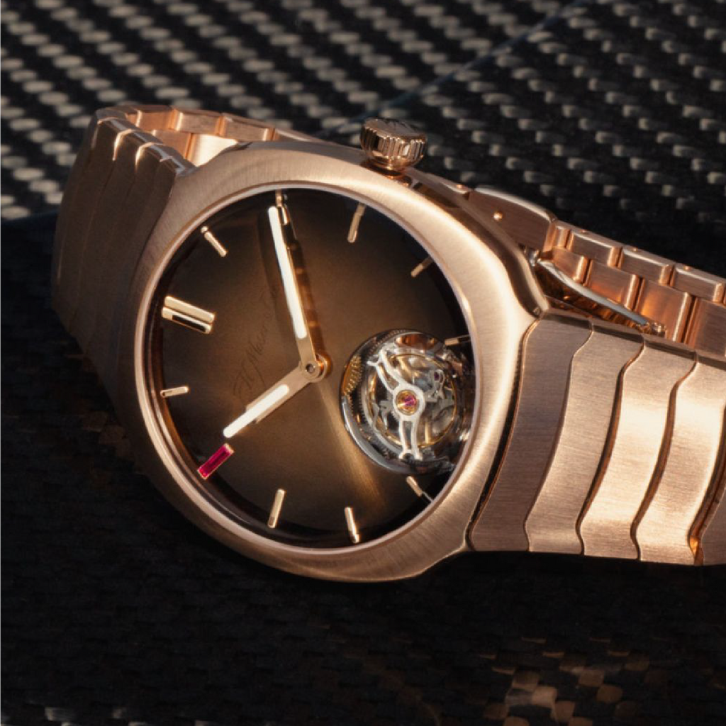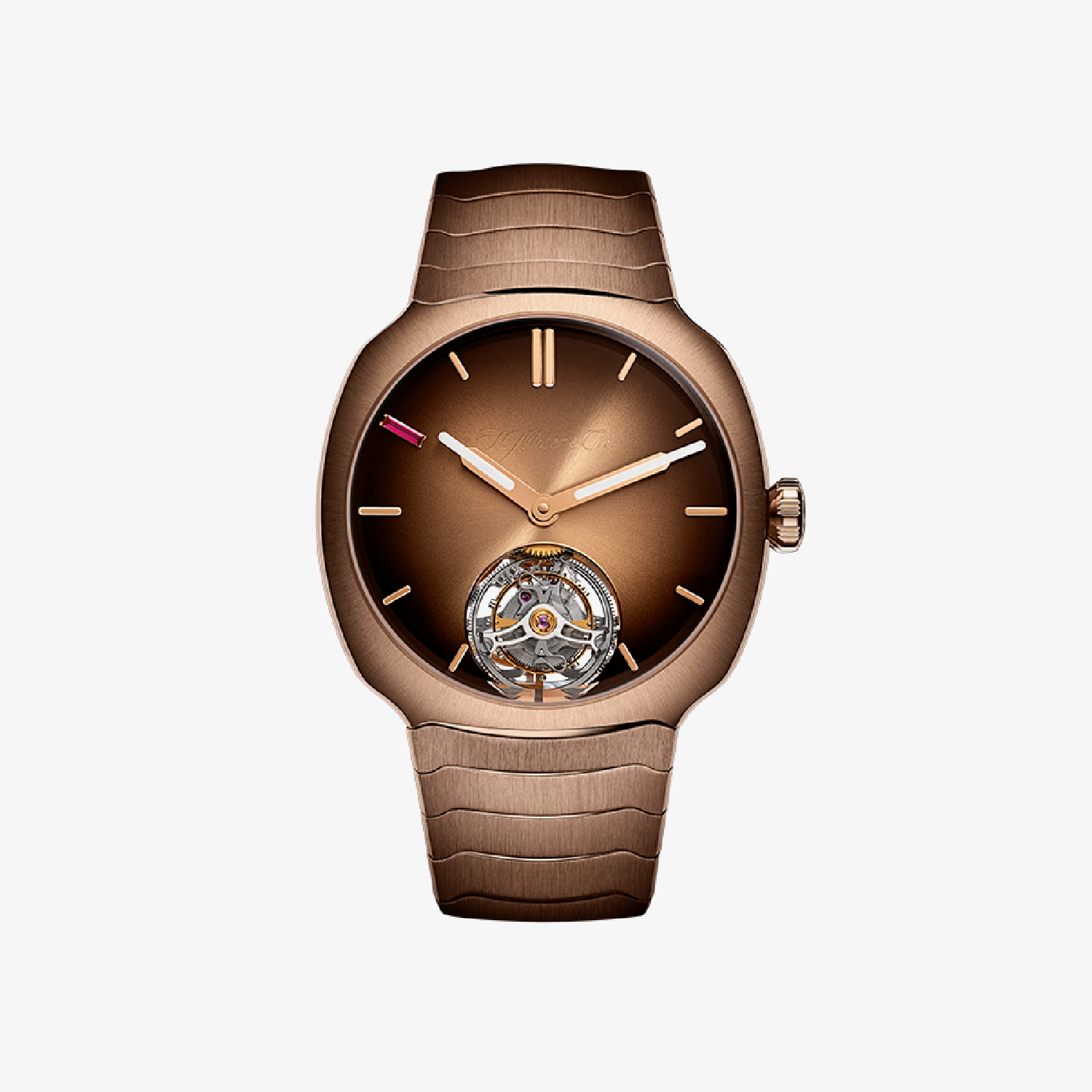 Housed in a 40 mm Streamliner case crafted from 5N red gold, the watch showcases a warm Chocolate fumé dial and a one-minute flying tourbillon powered by H. Moser’s in-house automatic calibre HMC 805. The calibre’s double hairspring and refined finishing ensure uncompromising accuracy while allowing an open view of its intricate mechanics.
