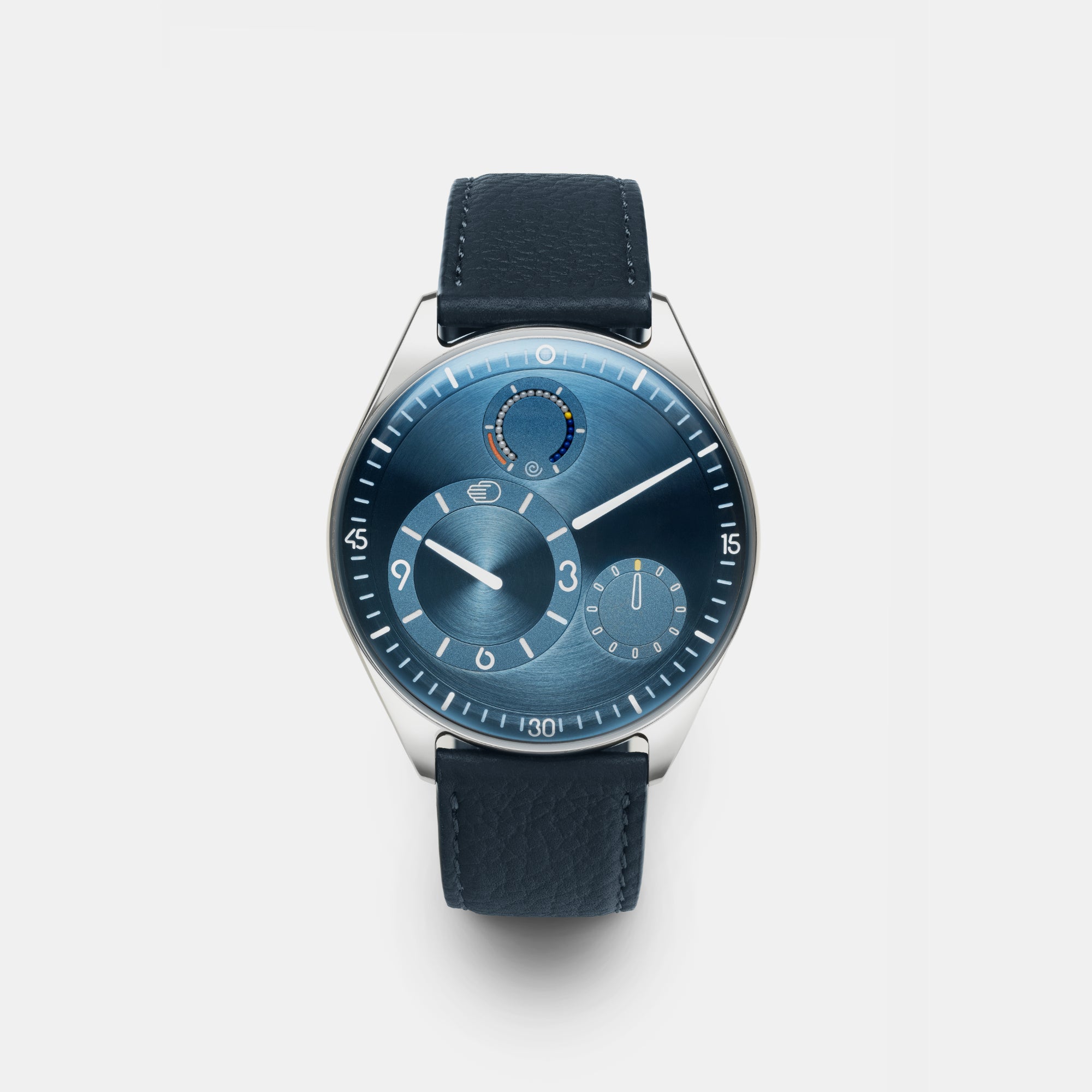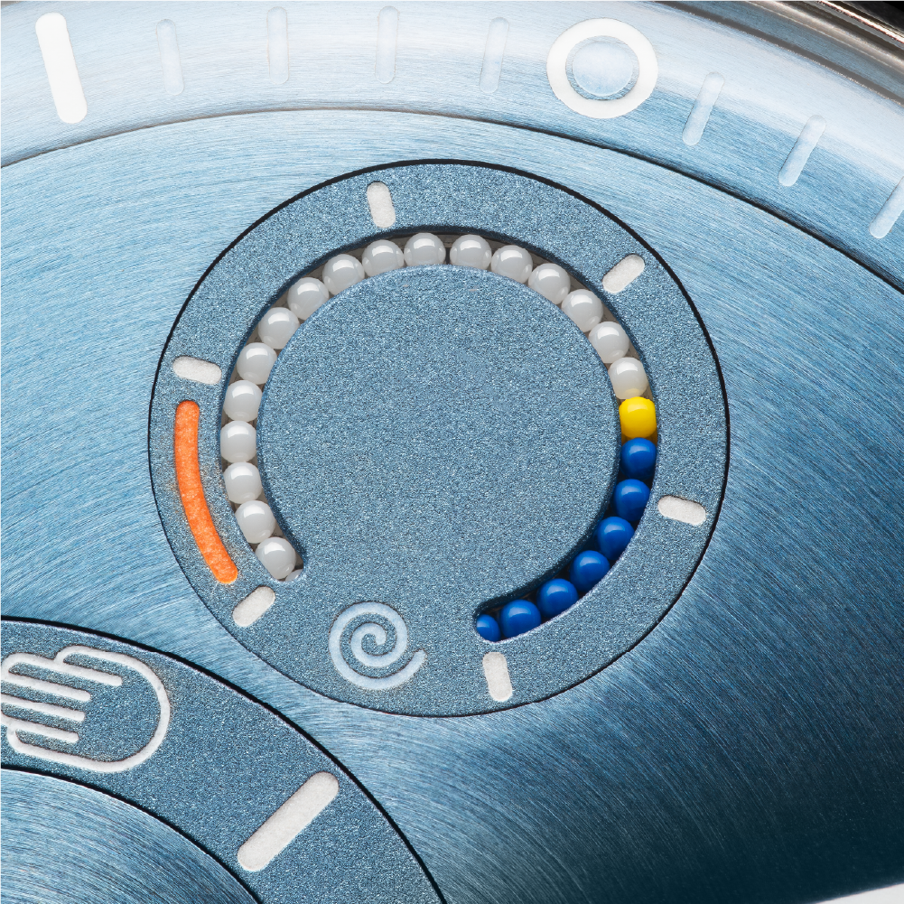 Instead of a typical indicator, you get a trail of ceramic micro-balls. Light and dark. As the watch winds, they shift. It’s subtle, slightly hypnotic, and very… Ressence.