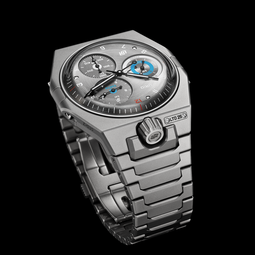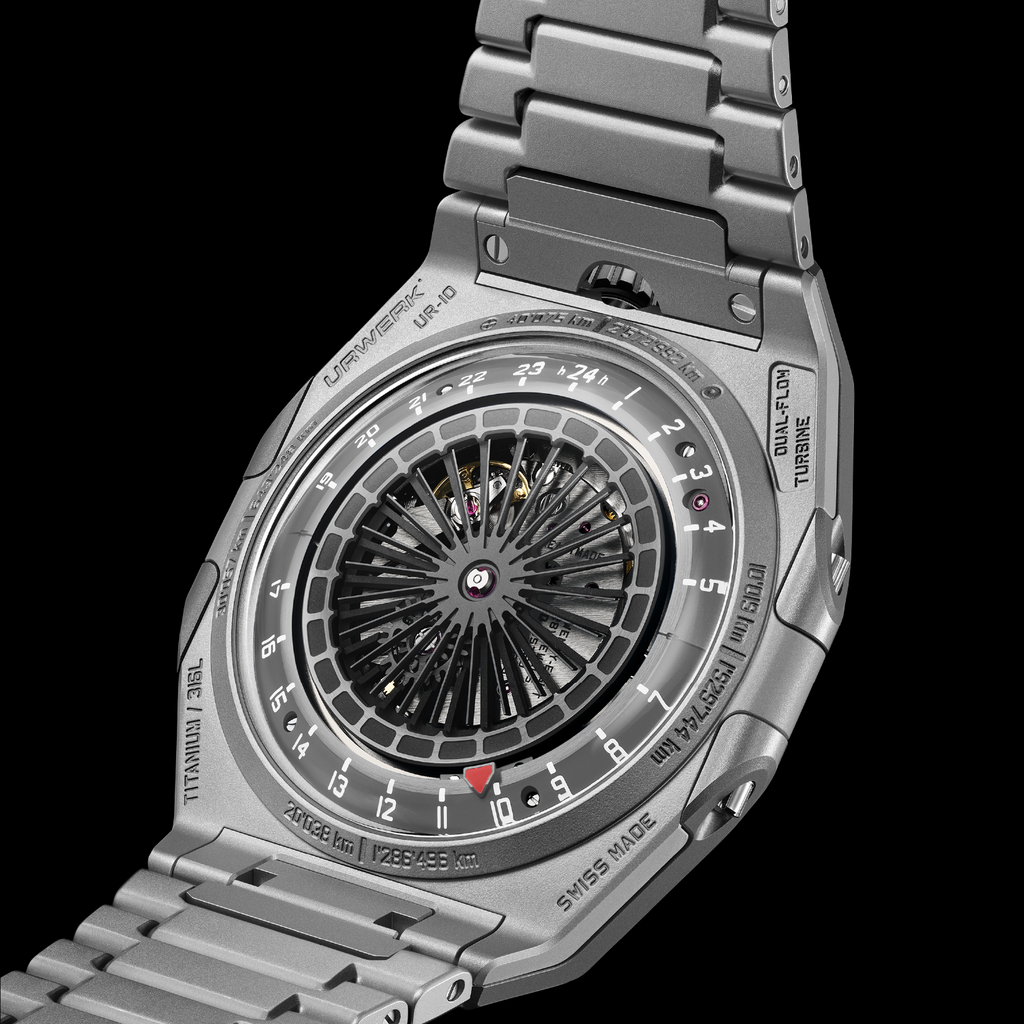 Powered by the UR-10.01 automatic calibre co-developed with Vaucher, it features a patented Dual Flow Turbine winding system and skeletonized LIGA wheels weighing less than an eyelash. The sandblasted titanium and steel case measures just 7.13 mm thick — one of URWERK’s slimmest ever — balancing technical mastery with poetic intent.